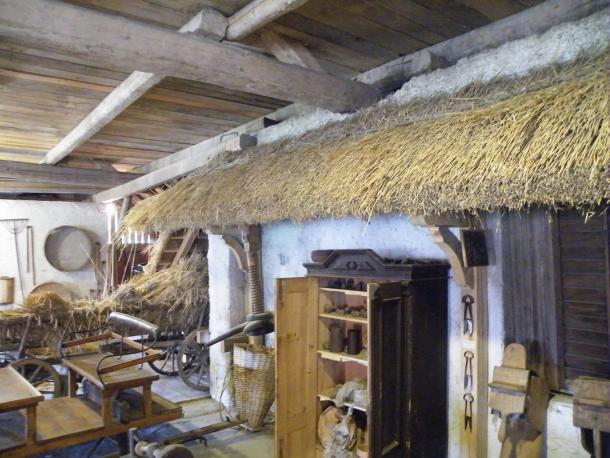 Pred petimi leti so iz hleva, zgrajenega leta 1928, preselili živino v velik kozolec, prirejen za prosto rejo krav dojilj. V zgornji del hleva s starim imenom šupa so postavili etnološko zbirko kmečkega orodja, obrti in rokodelstva. Na ogled so bivanjska oprema, naprave za mlekarstvo, mizarstvo, čevljarstvo, kovaštvo ter vse za obdelavo zemlje, žita, lanu, slame za kritino. Bogatajevi so spoznali, da le s kmetijstvom in gozdarstvom družina ne bo preživela, zato so se odločili za kombinacijo ekološke pridelave in turistične kmetije. Dušan poudarja, da svojim gostom ne morejo postreči samo z ekološko pridelano hrano, sami nimajo dovolj izbire, če pa se bodo za tovrstno pridelovanje odločili tudi drugi vaščani, bo lahko ves jedilnik postal ekološki.