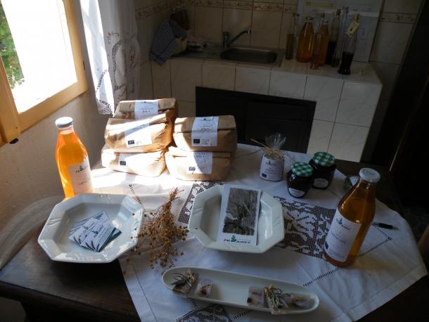 Kdor se ne počuti dobro, mu postrežejo zeliščno žganje racnijevc, komur pa nič ne manjka, lahko za dobro razpoloženje spije certovc iz borovnic, gozdnih jagod ali malin. Etiketo ekološki imajo pridelki, kot so slivova marmelada, rženi kosmiči, pšenična in ržena moka, pšenični in rženi kruh.