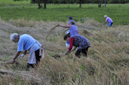 Na njivi pod kozolcem pridelujejo frugo. Tako po domače pravijo fižolu, pesi in drugi zelenjavi. S sadjem – tepkami, hruškami, moštnicami, kosmači in slivami – je letos križ, zelo malo ga bo. Zaradi mraza čebele niso opraševale, sadno drevje je potolkla toča.