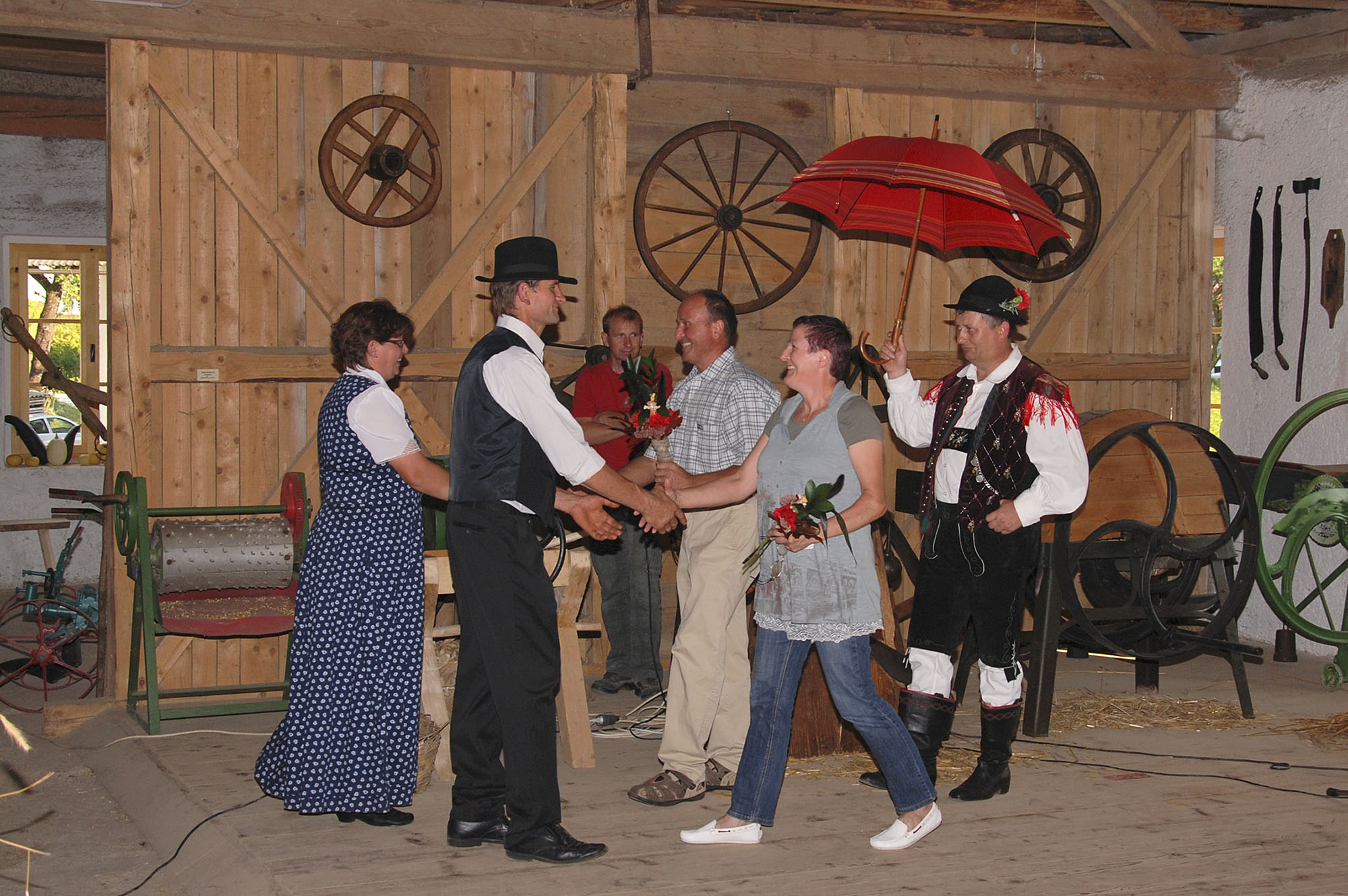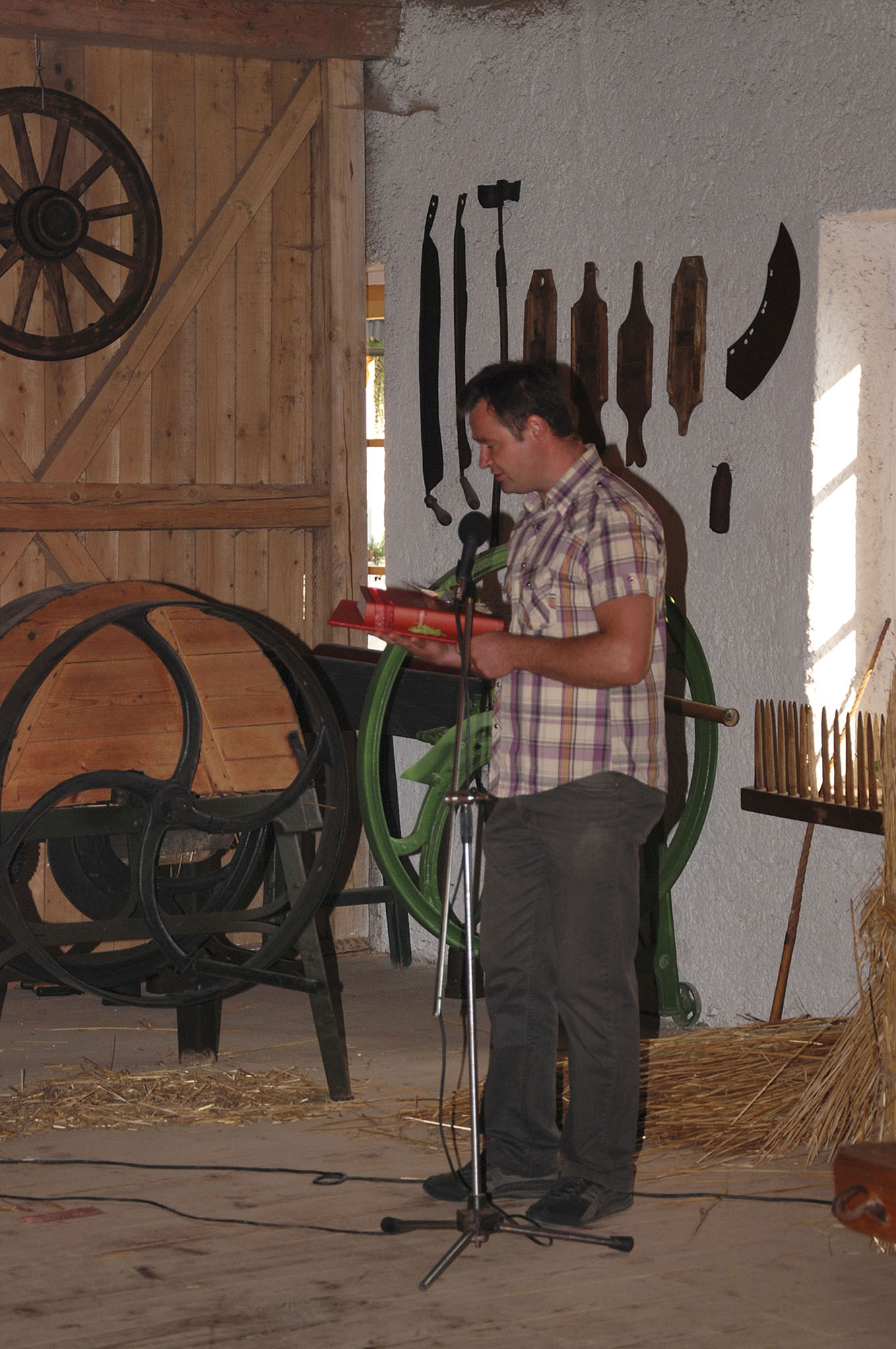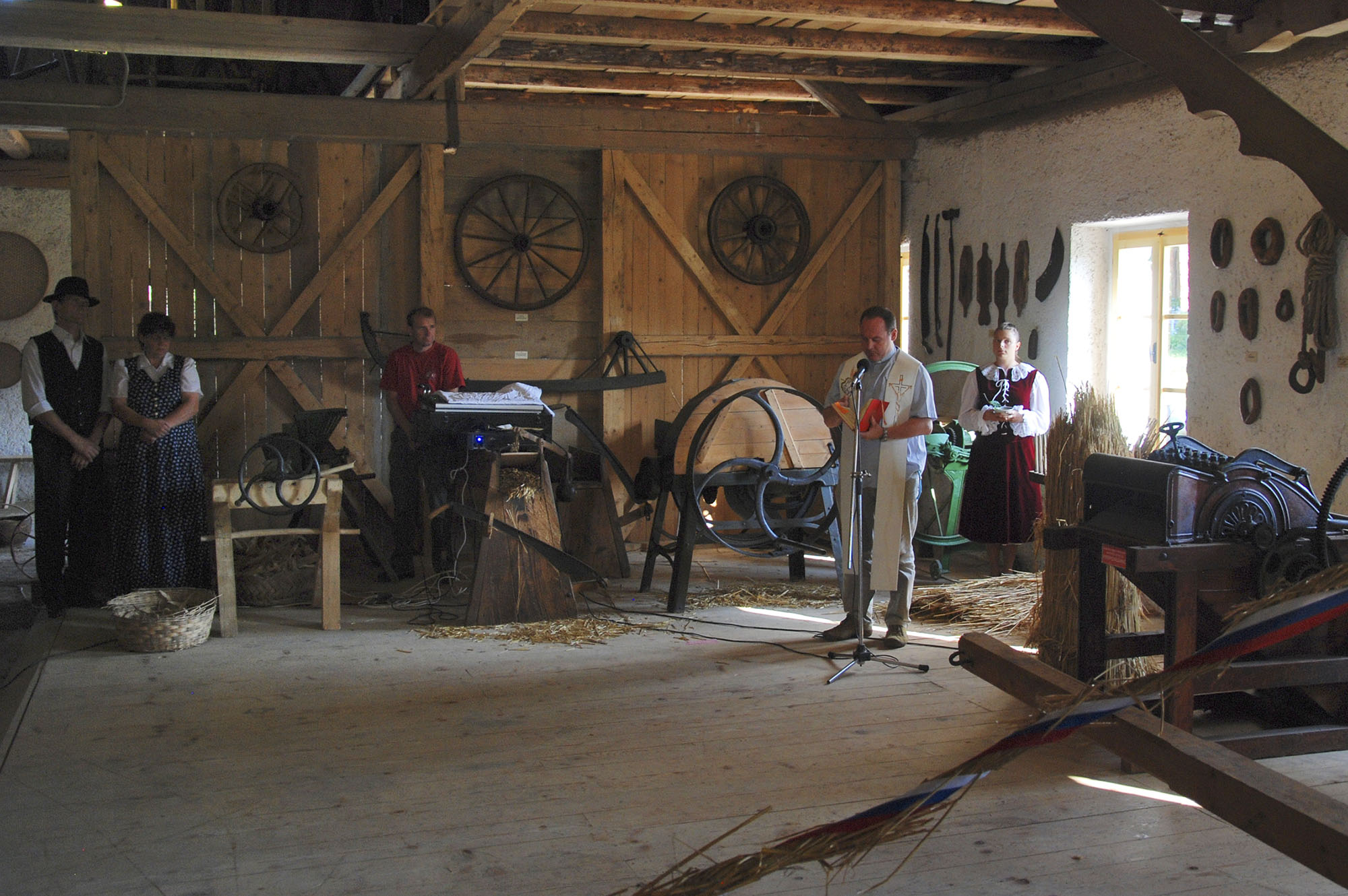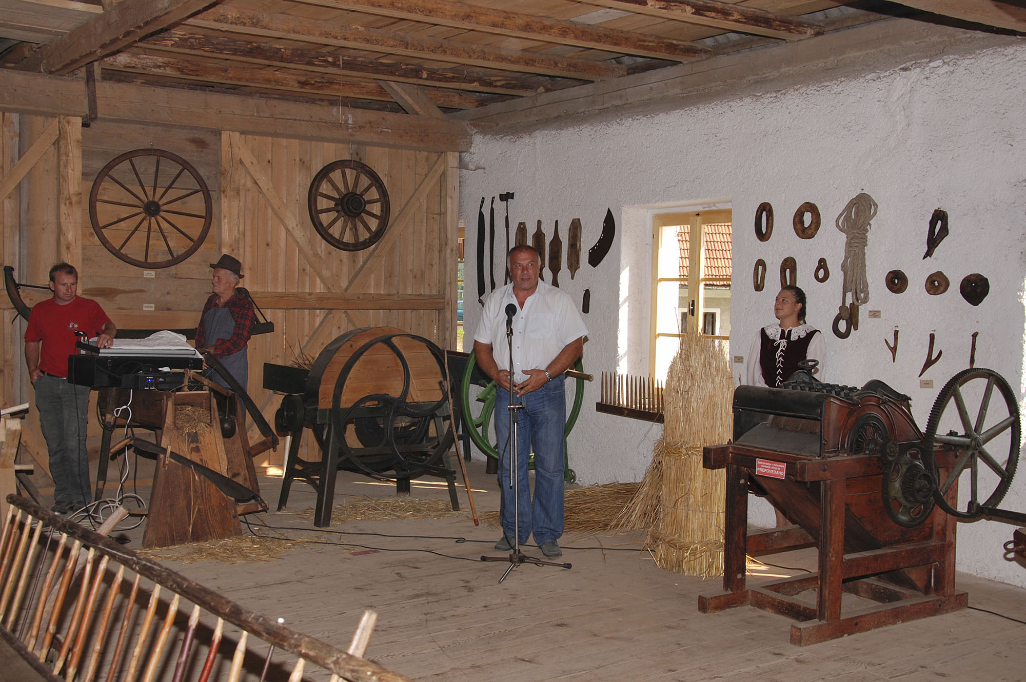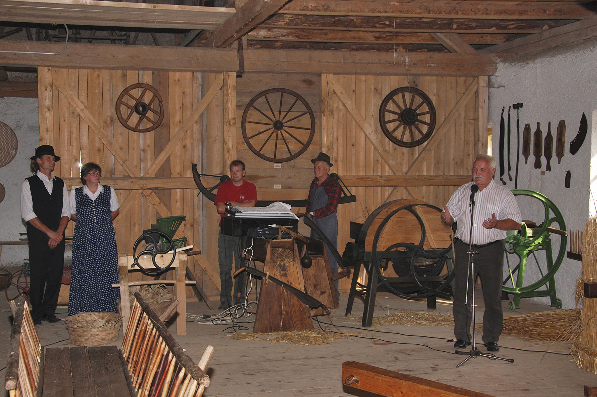 Tisto lepo sobotno popoldne smo v dobri družbi, na vabilo se je namreč odzvalo kar lepo število obiskovalcev, uradno otvorili naš skedenj (šupo) in s tem javno predstavili znatno povečano zbirko orodja in pripomočkov.