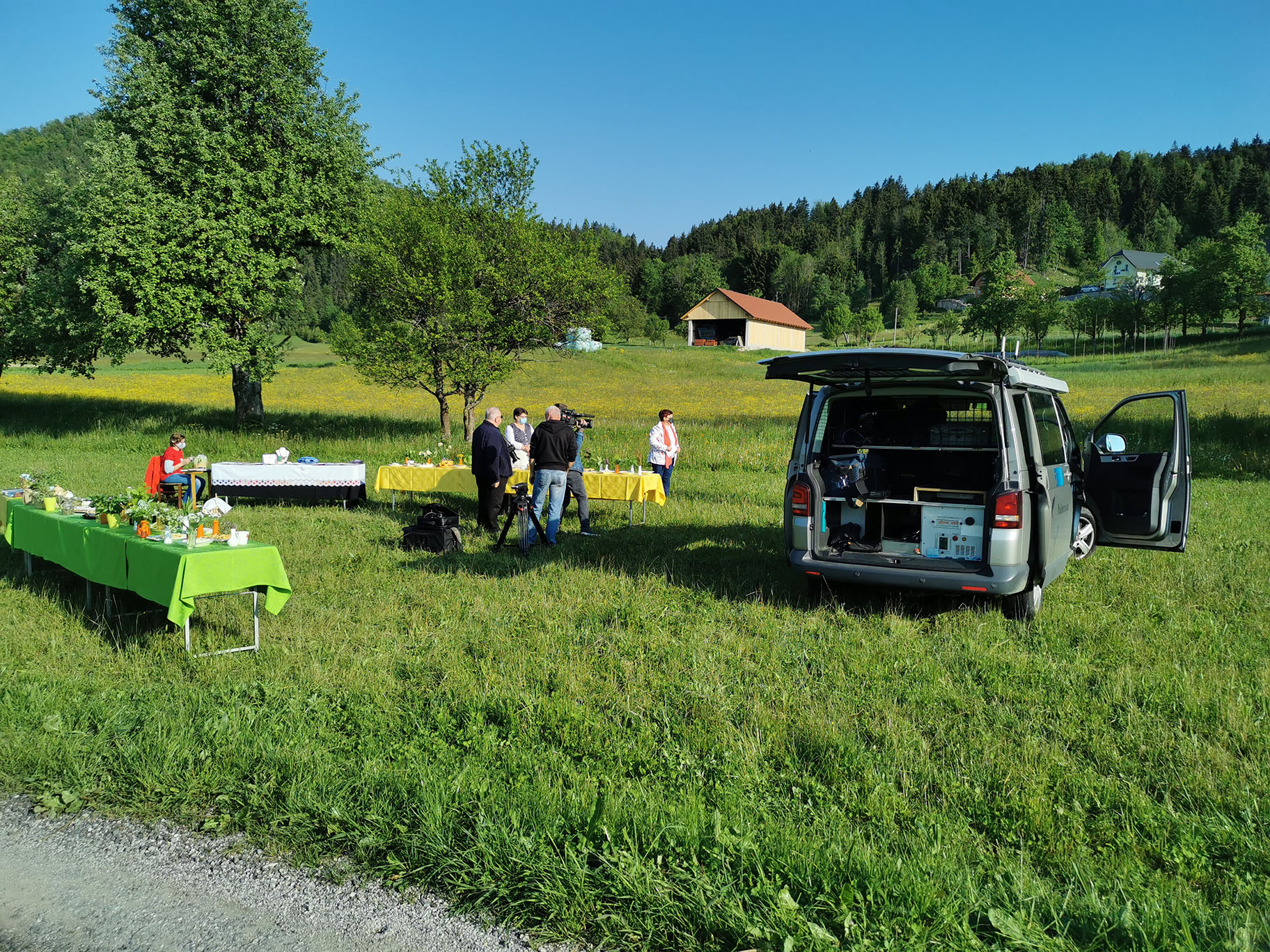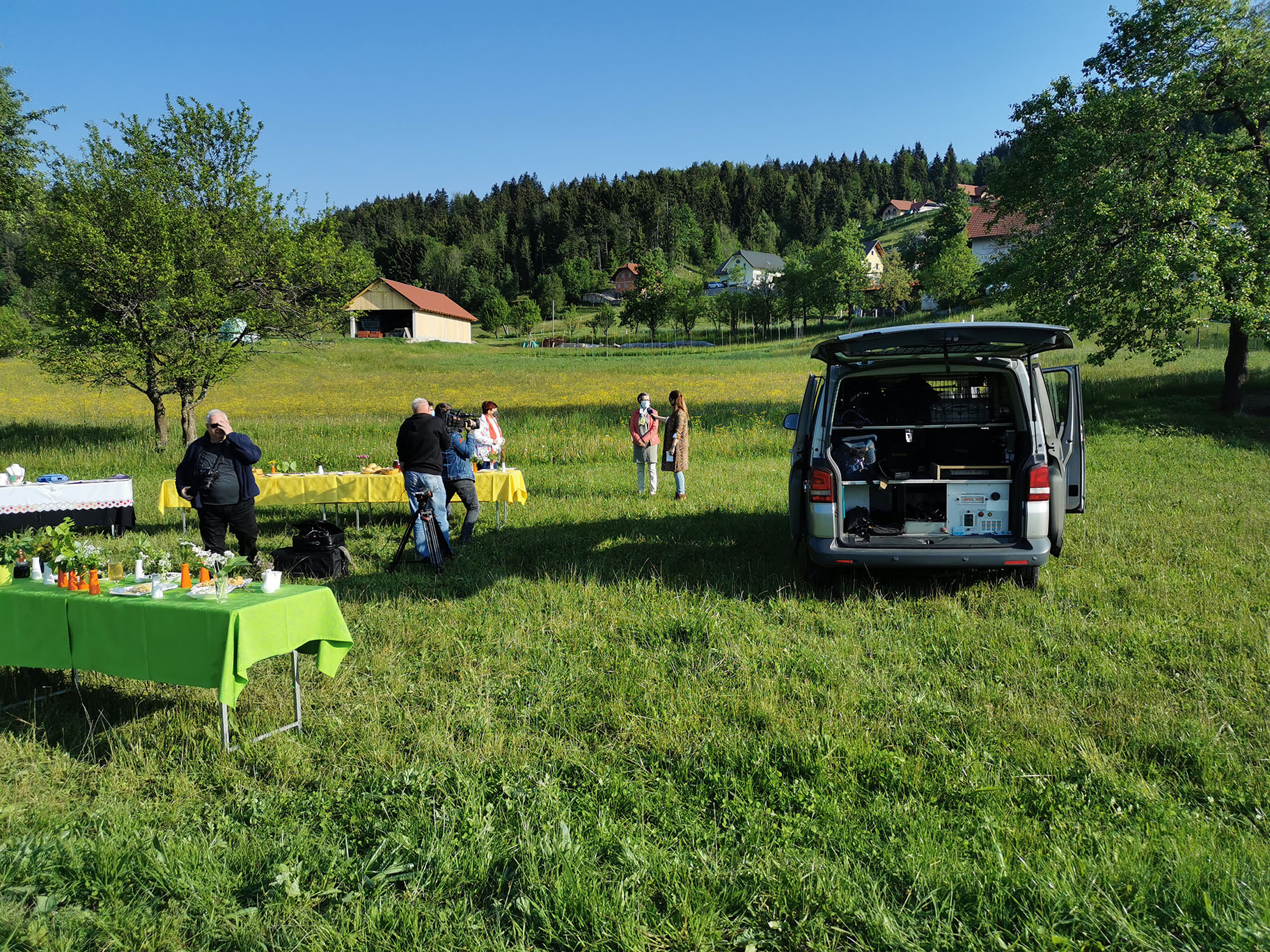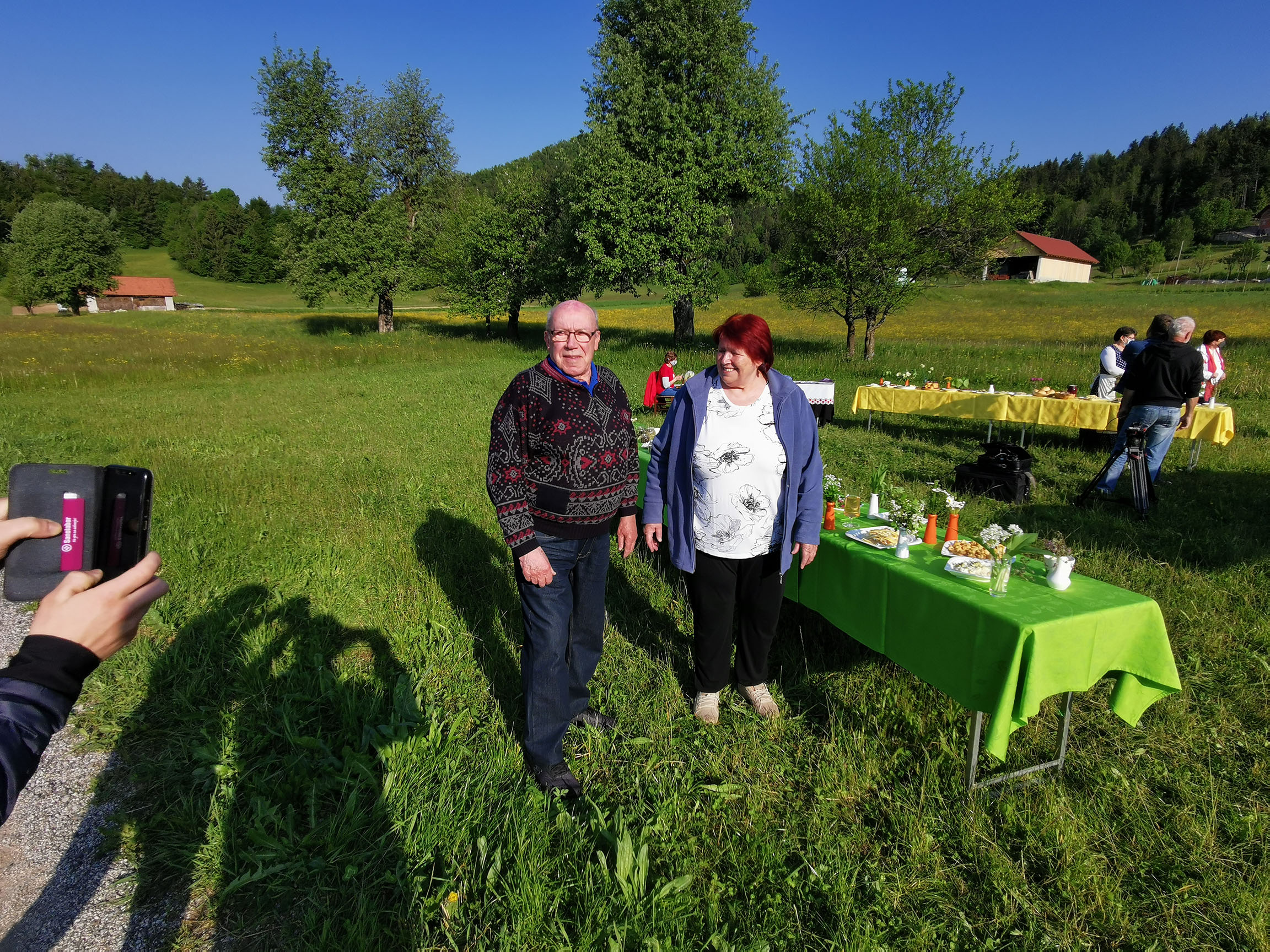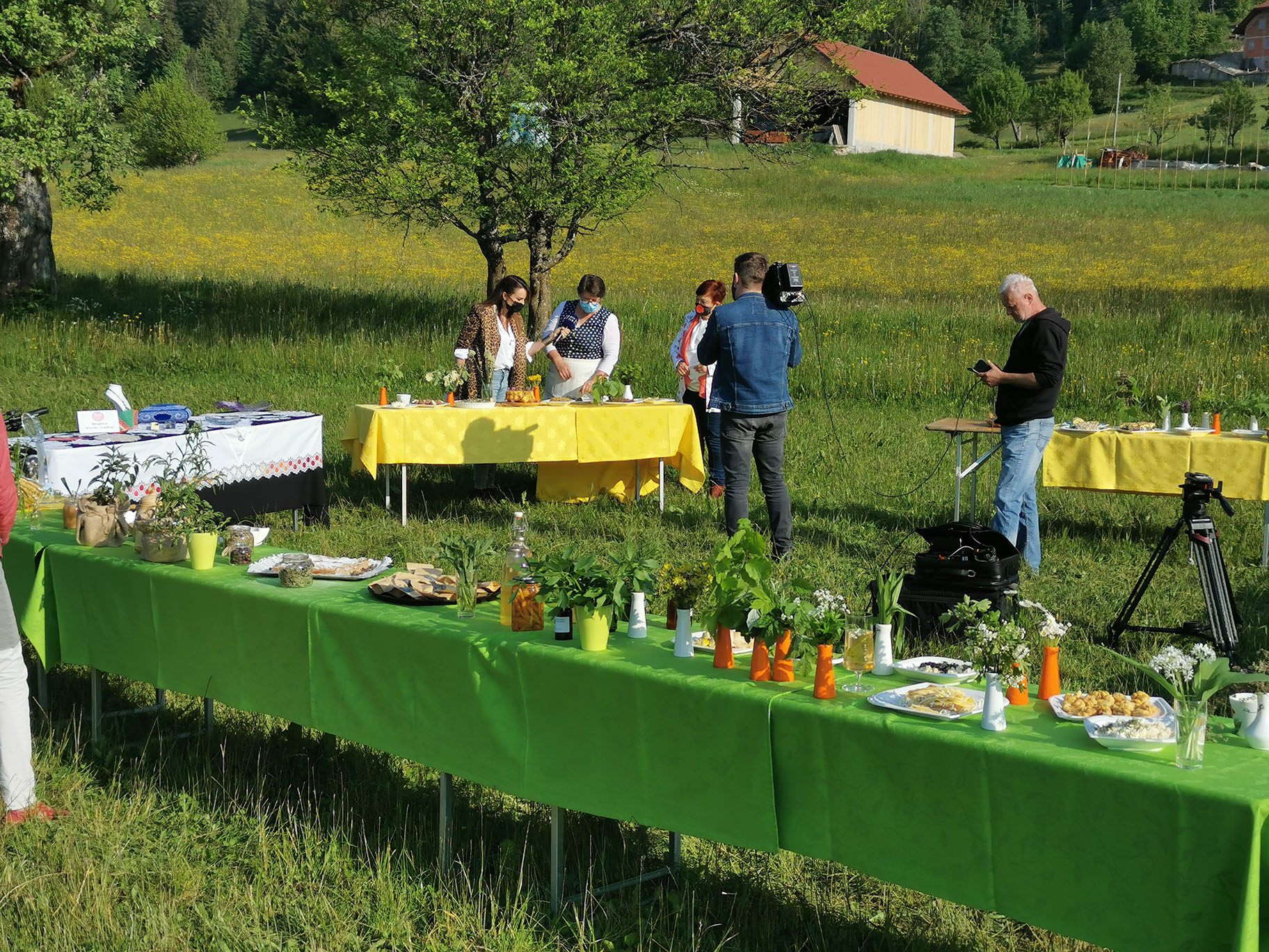 "Gospa Tomislava Bogataj iz kmetije Pr Jureč, ki je bila tudi sogovornica v oddaji, je z največjo zavzetostjo izdelala več jedi in pripravila šopke, čaje in skoraj vso okrasitev. Brez njenega moža Dušana pa tudi ne bi mogli, saj je svojim traktorjem razvažal mize do prizorišča."