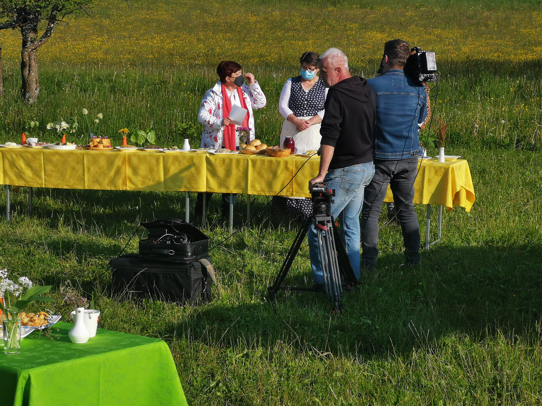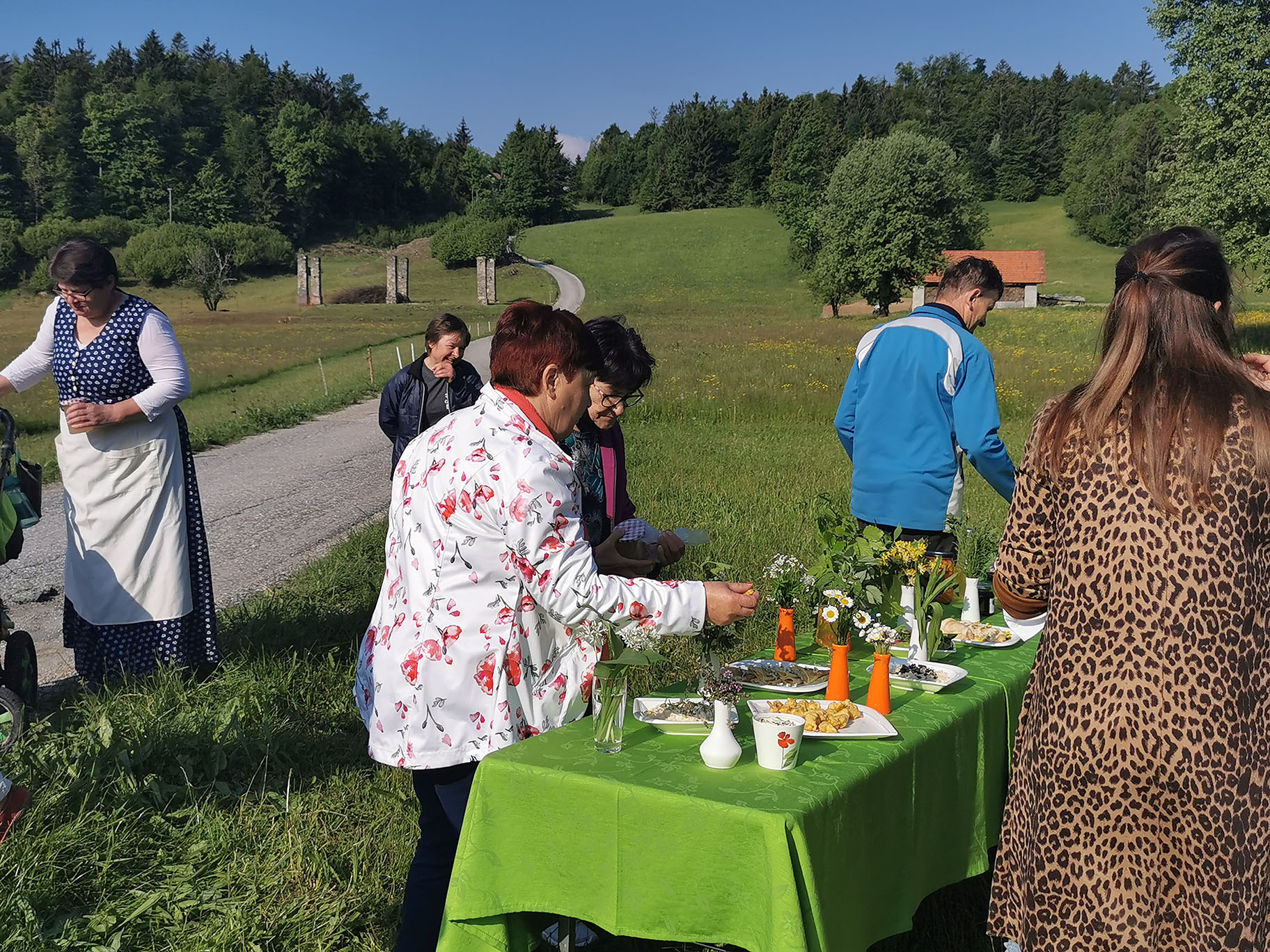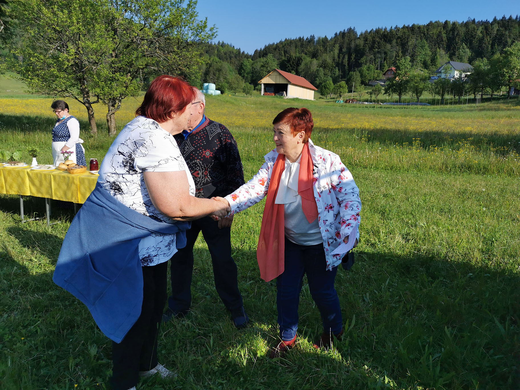 "Gospa Tomislava Bogataj iz kmetije Pr Jureč, ki je bila tudi sogovornica v oddaji, je z največjo zavzetostjo izdelala več jedi in pripravila šopke, čaje in skoraj vso okrasitev. Brez njenega moža Dušana pa tudi ne bi mogli, saj je svojim traktorjem razvažal mize do prizorišča."