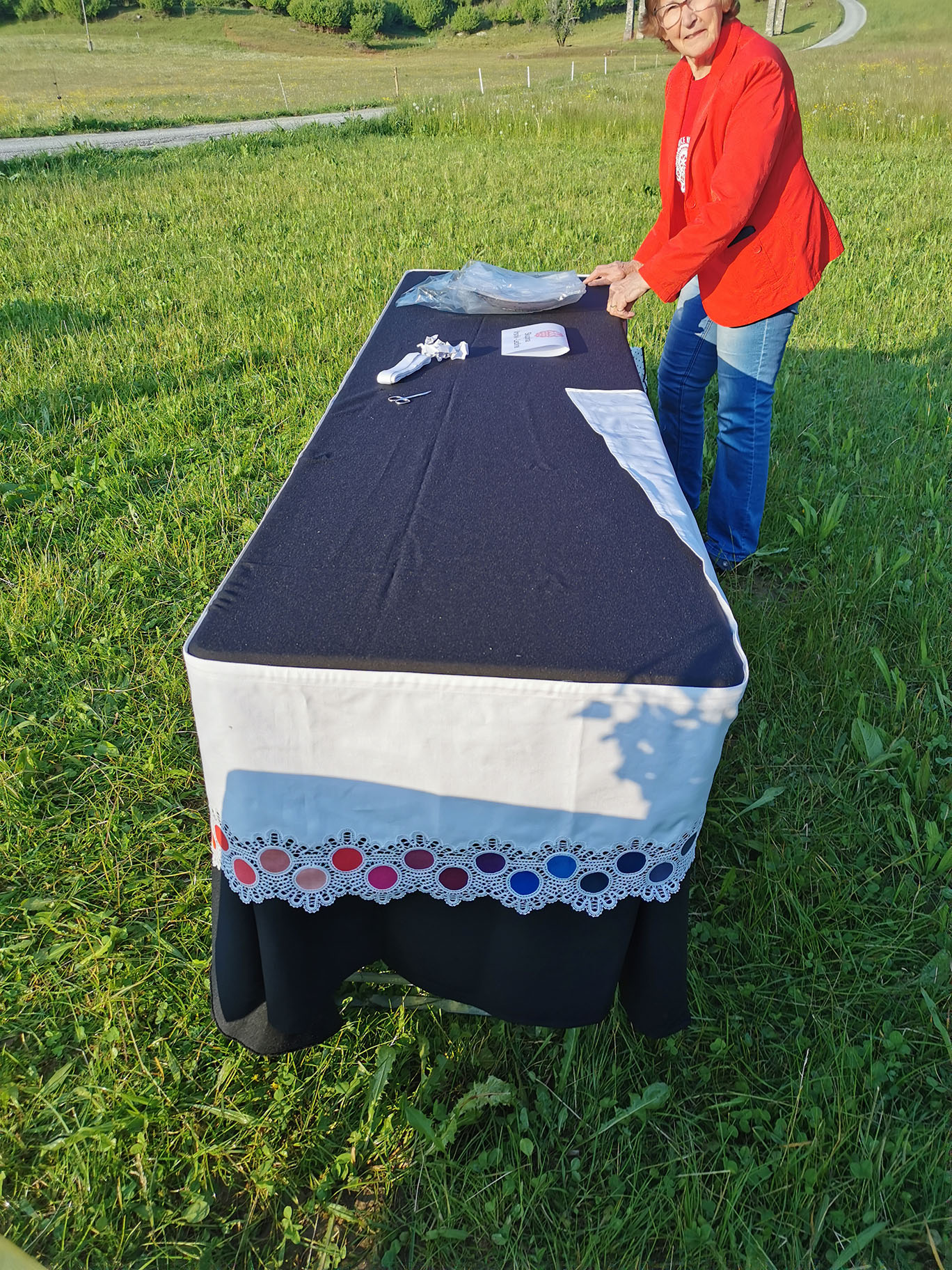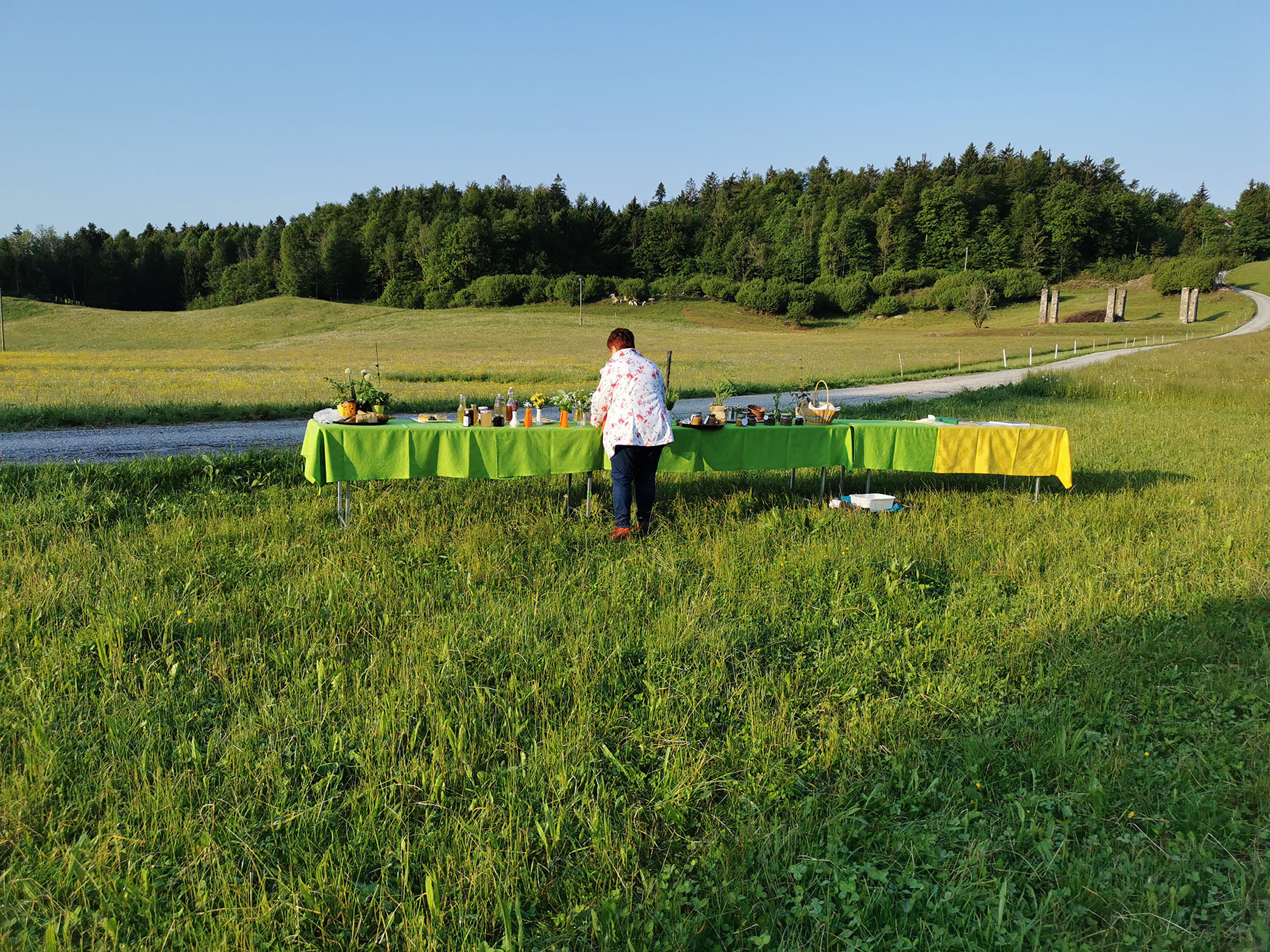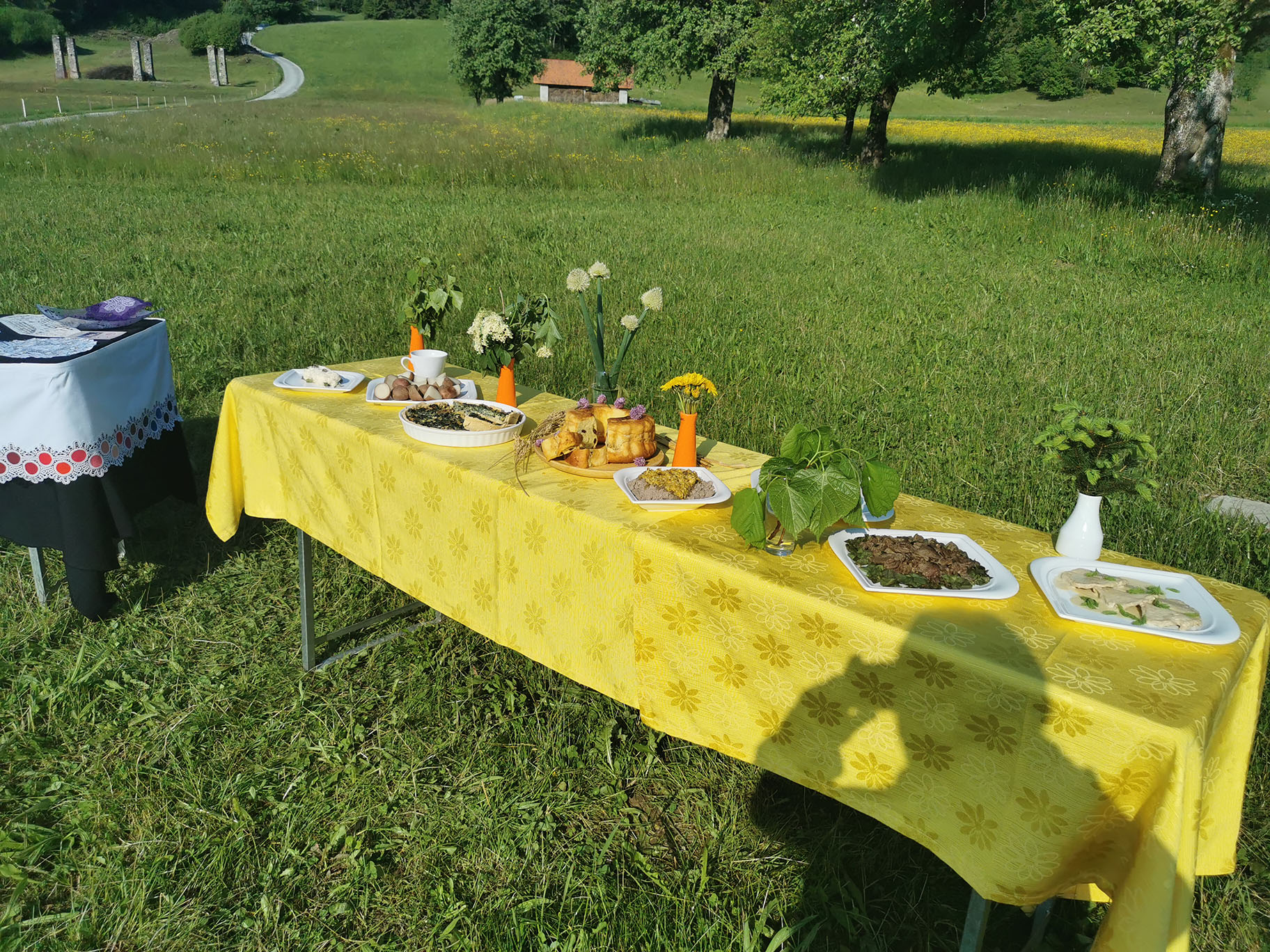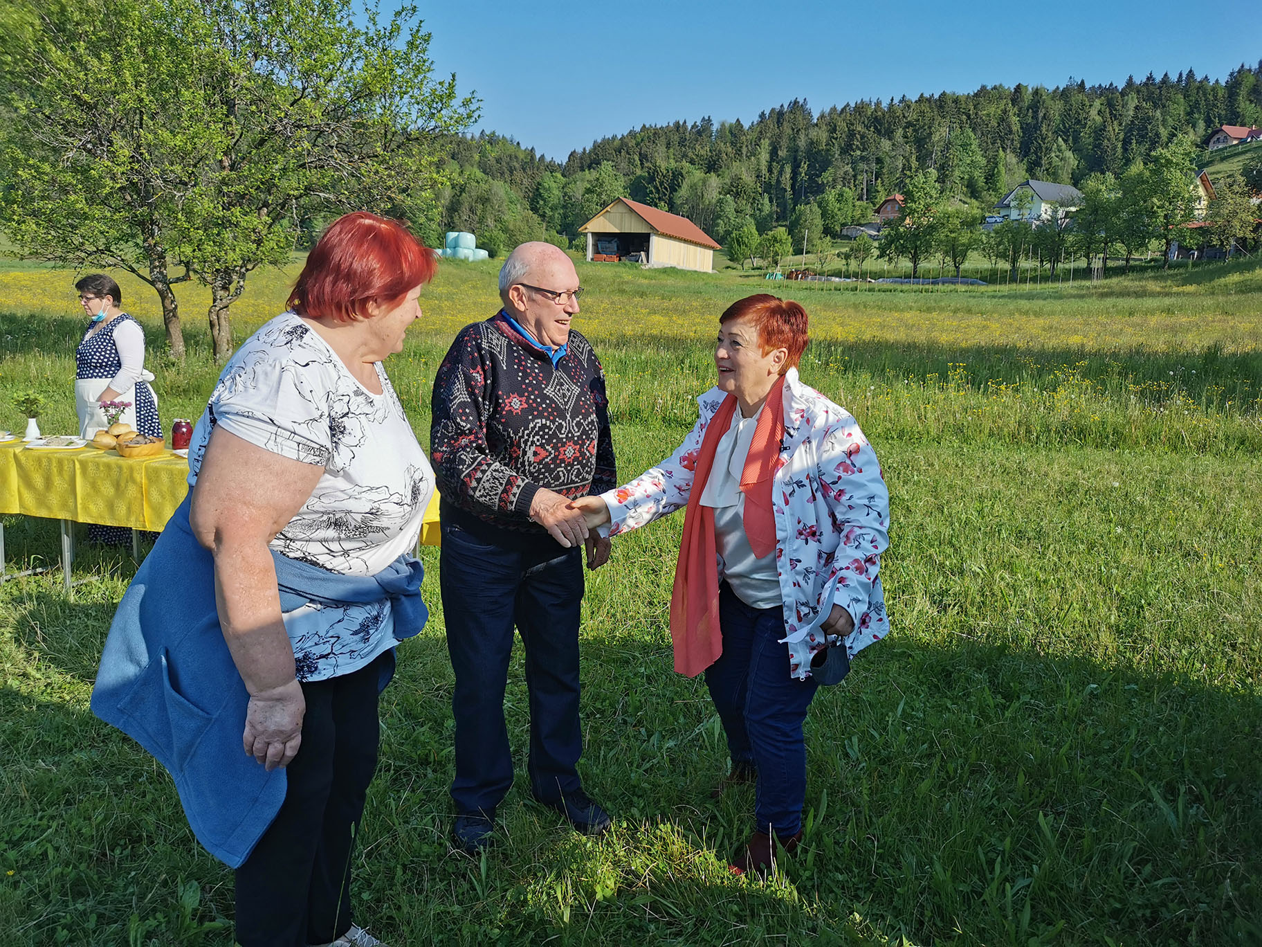 "Gospa Tomislava Bogataj iz kmetije Pr Jureč, ki je bila tudi sogovornica v oddaji, je z največjo zavzetostjo izdelala več jedi in pripravila šopke, čaje in skoraj vso okrasitev. Brez njenega moža Dušana pa tudi ne bi mogli, saj je svojim traktorjem razvažal mize do prizorišča."
