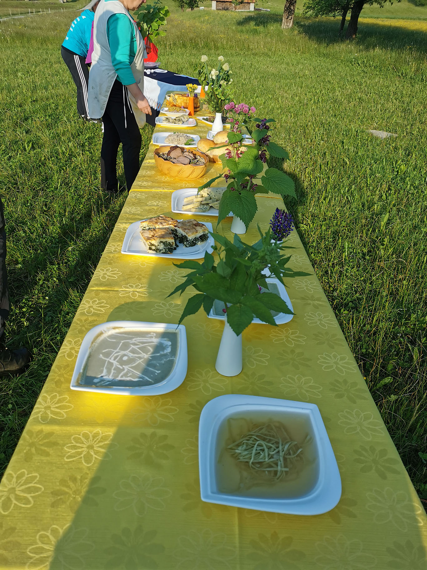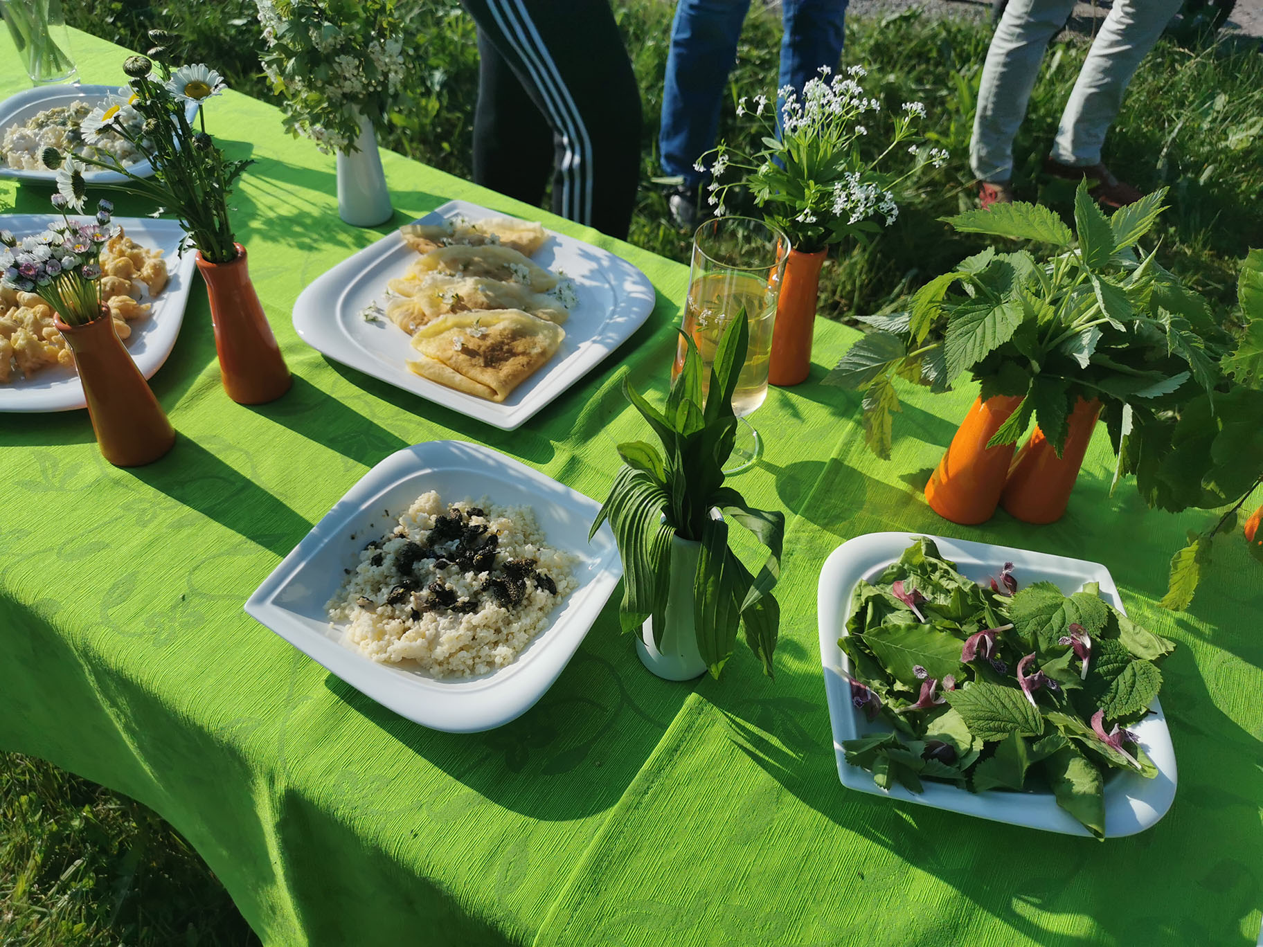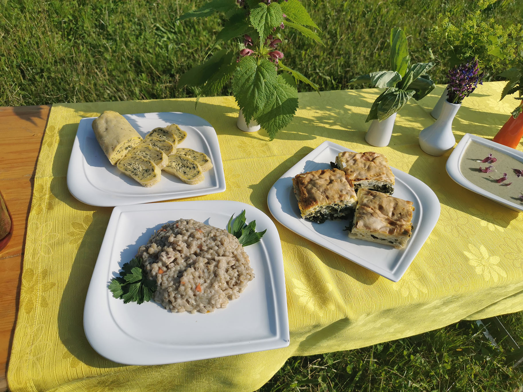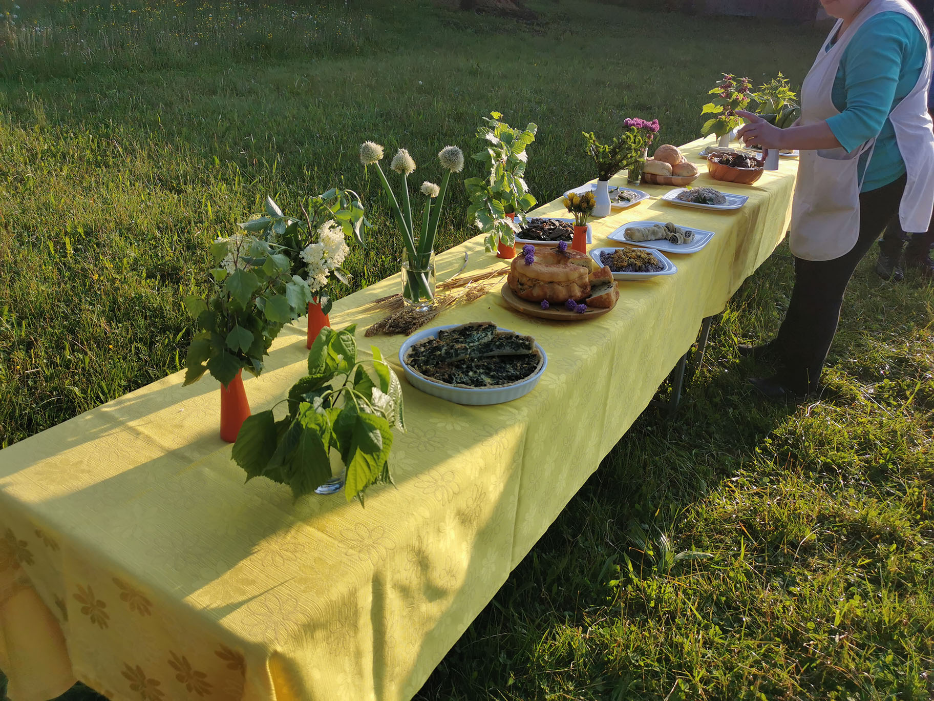 Gospa Lučka Dolničar se je zelo strokovno, poglobila v kulinariko v Ledinah in nam dala zelo koristne nasvete. Prvo je pomembno vedeti, kaj pomeni naravno in sicer ni vse kar je naravno tudi za jesti. Zato bomo v bodoče ta pojem posebej izpostavili. Vse kar je bilo na mizi od divjih rastlin je spadalo v človekovo prehransko verigo, zato smo lahko to tudi poizkušali. Gospa Lučka se je spomnila tudi na potico zelševko, ki je bila tam zelo znana, bila je tudi na mizi."