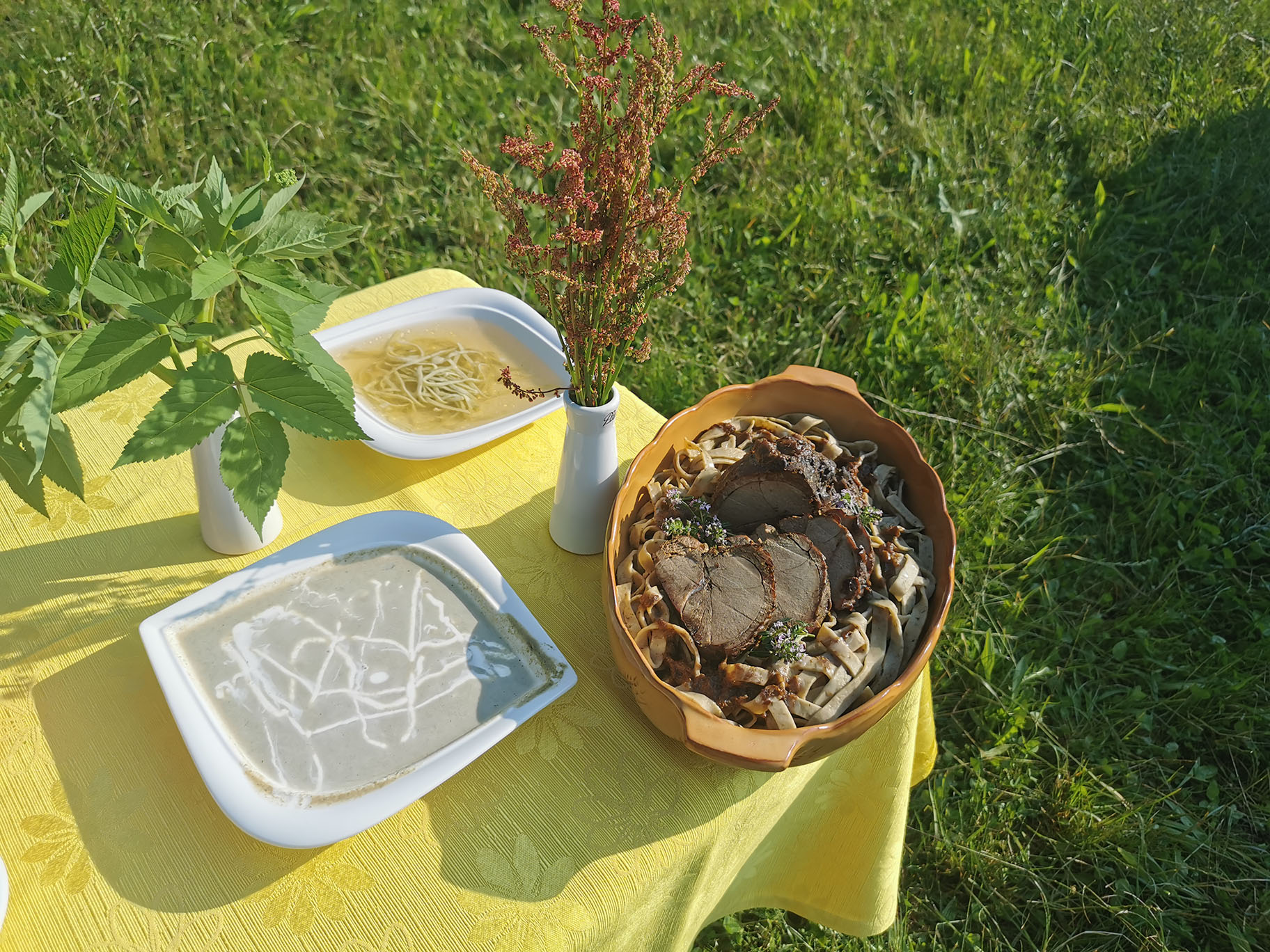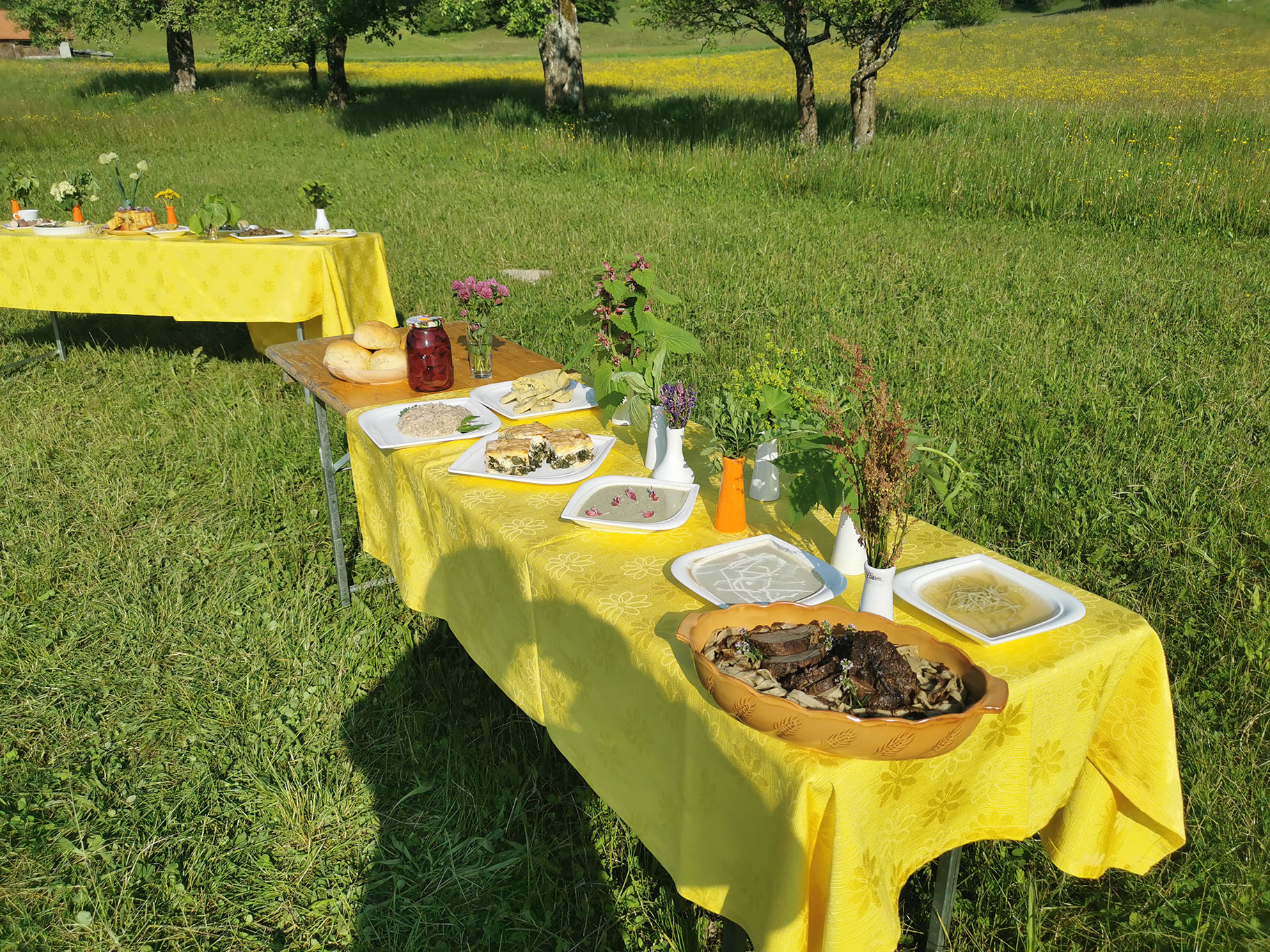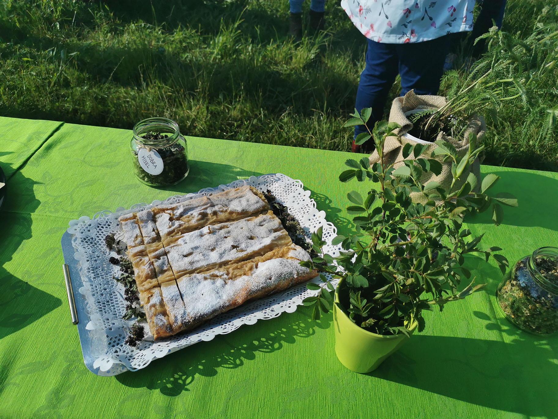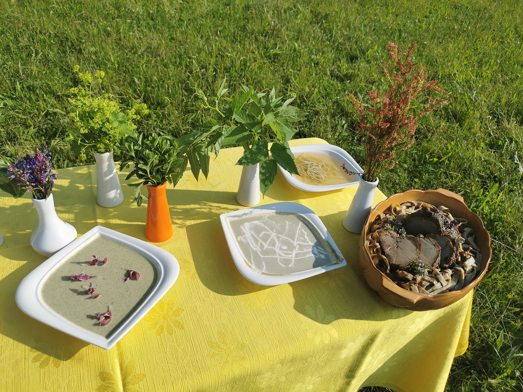 Gospa Lučka Dolničar se je zelo strokovno, poglobila v kulinariko v Ledinah in nam dala zelo koristne nasvete. Prvo je pomembno vedeti, kaj pomeni naravno in sicer ni vse kar je naravno tudi za jesti. Zato bomo v bodoče ta pojem posebej izpostavili. Vse kar je bilo na mizi od divjih rastlin je spadalo v človekovo prehransko verigo, zato smo lahko to tudi poizkušali. Gospa Lučka se je spomnila tudi na potico zelševko, ki je bila tam zelo znana, bila je tudi na mizi."