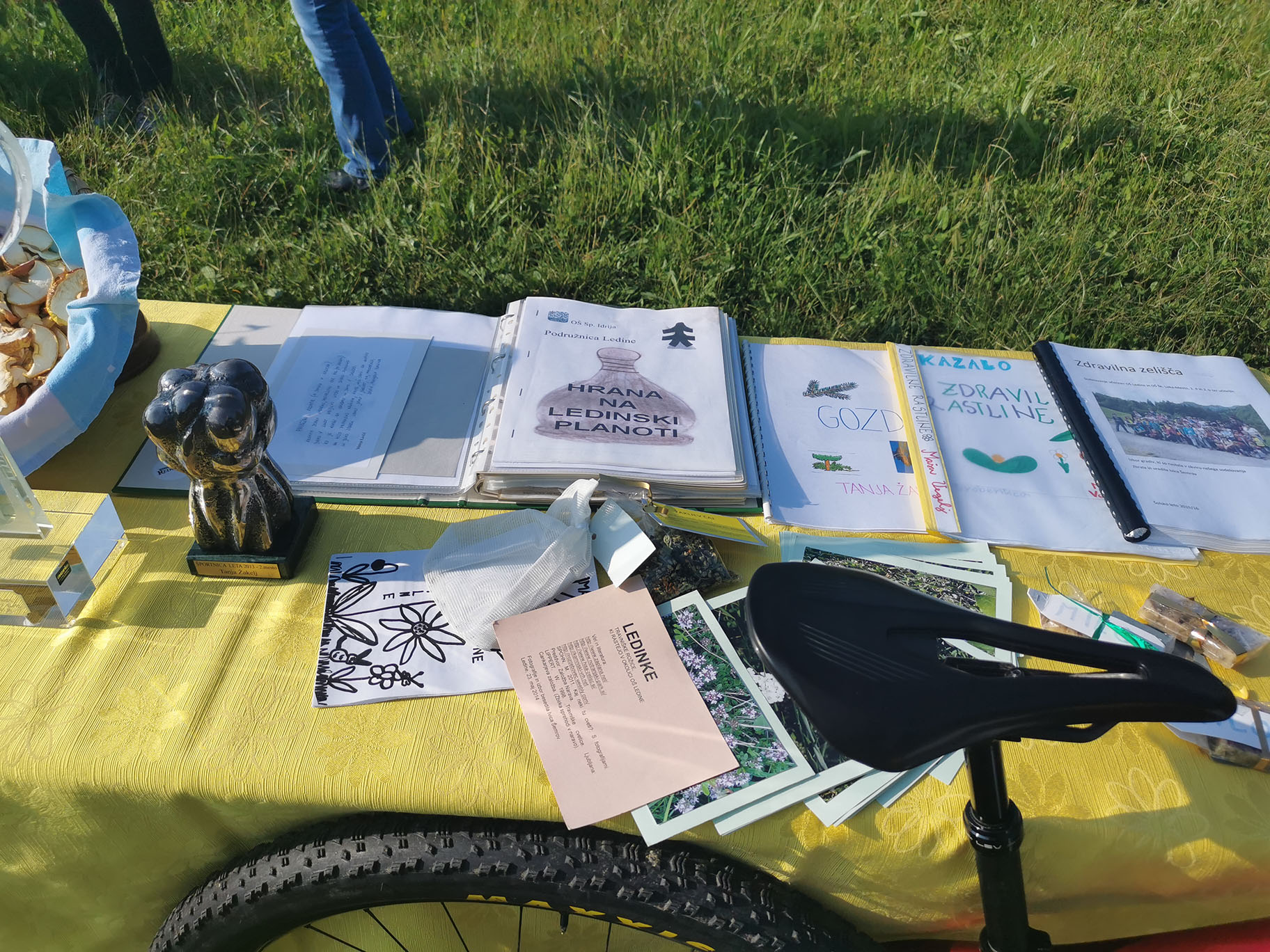 "Z nami je bila v oddaji tudi vrhunska športnica, gorska kolesarka Tanja Žakelj, večkratna svetovna, evropska in državna prvakinja, ki je bila tudi sama učenka šole v Ledinah. Vprašali smo jo, ali ima kakšno posebno hrano, dieto, da dosega vrhunske uspehe. Pa je povedala, da uživa vse tisto kar drugi domači in sovaščani. Vse, kar zraste in pridelajo na Ledinski planoti. Nič posebnega, domača hrana ji daje moč za uspehe."